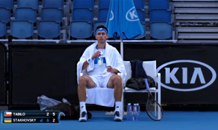 Сергей Стаховский завершает выступление на турнире в Мельбурне.