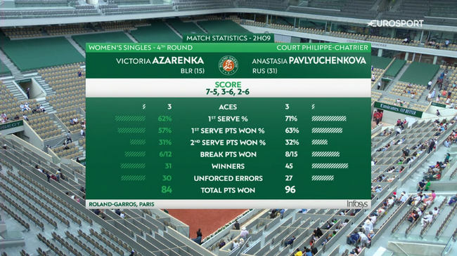 Анастасия Павлюченкова выбила Викторию Азаренко в четвёртом круге турнира во Франции
