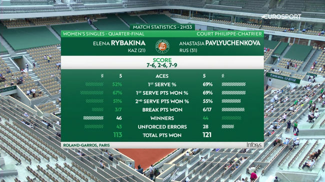 Анастасия Павлюченкова (Россия, 31) — Елена Рыбакина (Казахстан, 21) 6:7(2), 6:2, 9:7