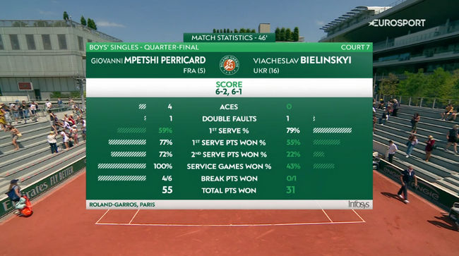 Теннисисты провели на корте всего 46 минут игрового времени. Белинский проиграл четыре гейма на своей подаче и не сумел реализовать единственный заработанный брейк-поинт.