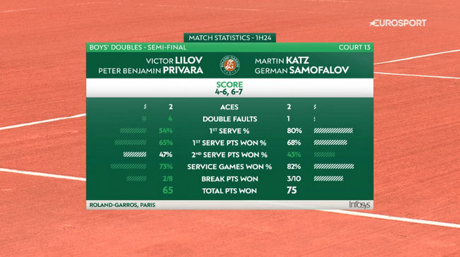 В полуфинальном матче Герман Самофалов и Мартин Катц из Бельгии обыграли американца Виктора Лилова и словака Петера Бенджамина Привару — 6:4, 7:6(6). Отметим, для обоих теннисистов это дебютный юниорский турнир Большого Шлема и первое совместное выступление.
