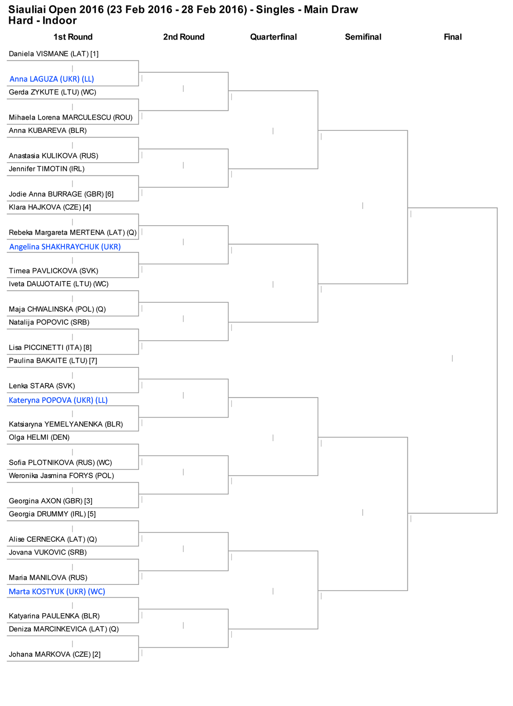 Попова, Костюк и Шахрайчук сыграют в четвертьфинале юниорского турнира в Литве