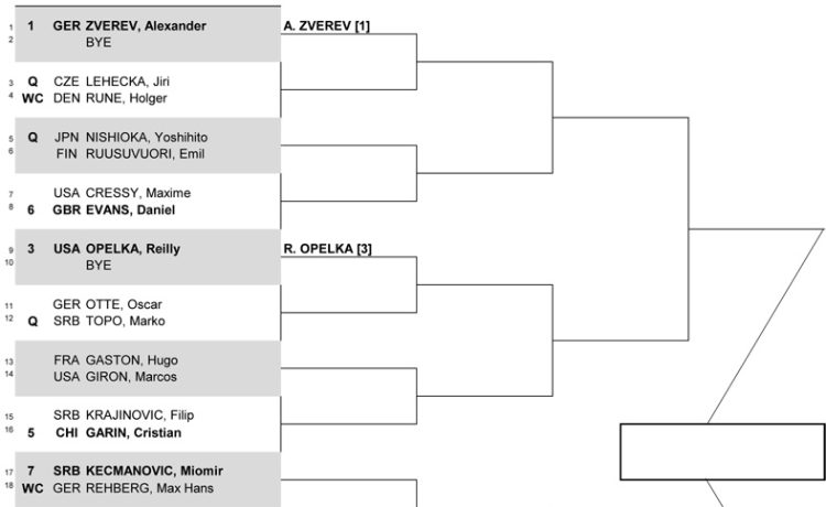 Александр Зверев, Каспер Рууд, Райли Опелка и Николоз Басилашвили, вошедшие в топ-4 посева, пропускают матч первого круга.