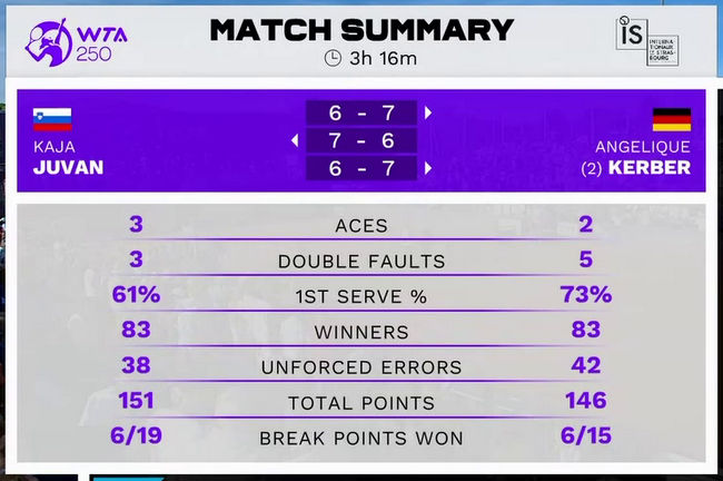 Анжелик Кербер (Германия, 2/WC) — Кайя Юван (Словения) 7:6(5), 6:7(0), 7:6(5)