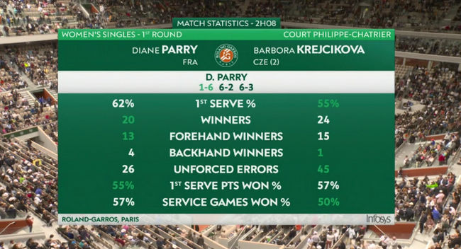 Диан Парри (Франция) — Барбора Крейчикова (Чехия, 2) 1:6, 6:2, 6:3