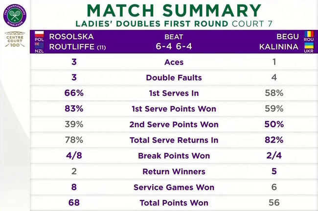 Украинка впервые сыграла в парном разряде на Уимблдоне. Для Калининой и Бегу это был первый совместный матч. В нынешнем сезоне наша теннисистка принимала участие на других «Шлемах»: на Australian Open с Варварой Грачёвой и на Ролан Гаррос с Белиндой Бенчич. В обоих случаях пары уступали в первом круге.