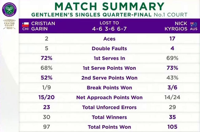 Ник Кириос выиграл четвертьфинальный матч против Кристиана Гарина