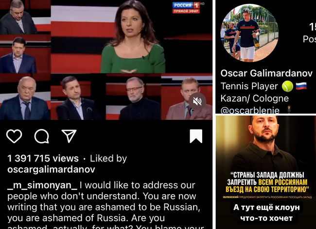 Не являются ли теннисисты исключением, когда дело доходит до кремлевской дезинформации? Мы решили выяснить, есть ли среди представителей тенниса от юниоров до профессионалов те, кто потребляет пропагандистский продукт, более того, оставляет ли кто-то свои «лайки» таким публикациям.