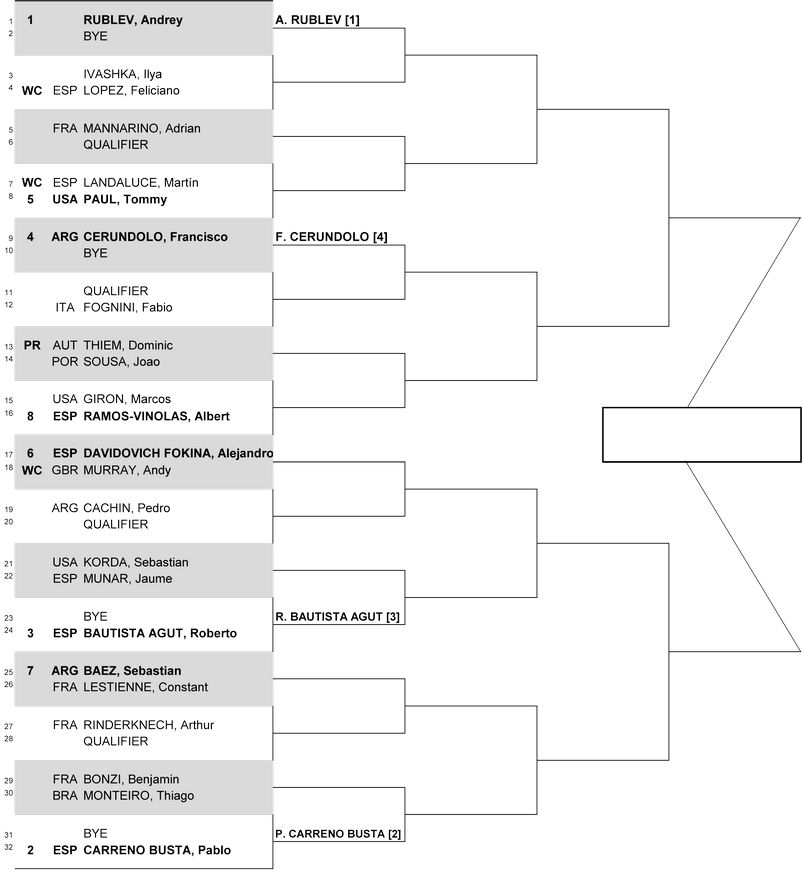 Результаты жеребьевки на турнире АТР 250 в Испании