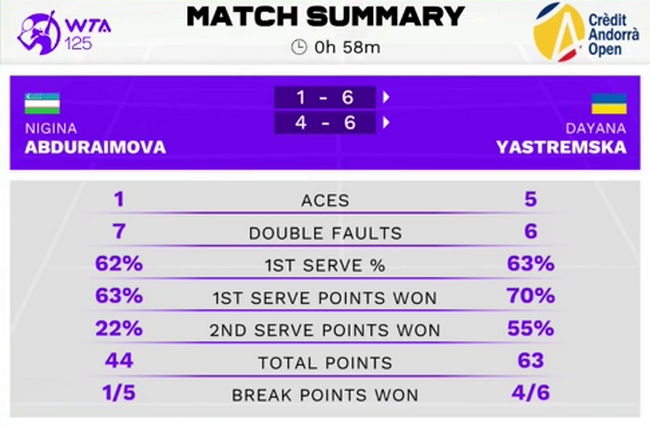 Даяна Ястремская вышла во второй круг на турнире WTA 125 в Андорре