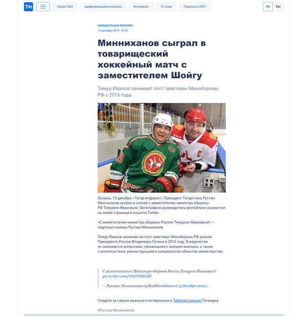 О ПРЕЗИДЕНТЕ ТАТАРСТАНА, ВОЙНЕ И СПОРТЕ