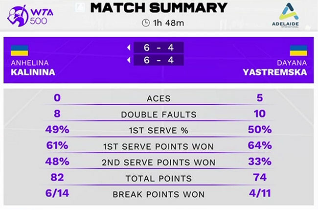 Ангелина Калинина (Украина, 1) — Даяна Ястремская (Украина) 6:4, 6:4
