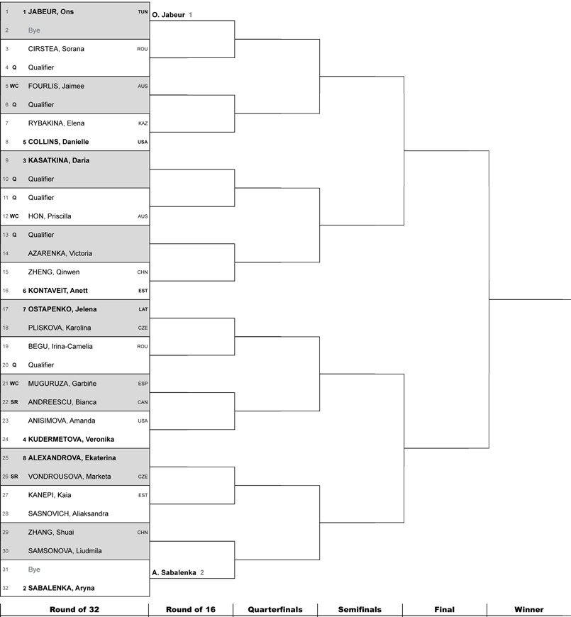 Сетки турнира: квалификация • одиночный разряд • парный разряд