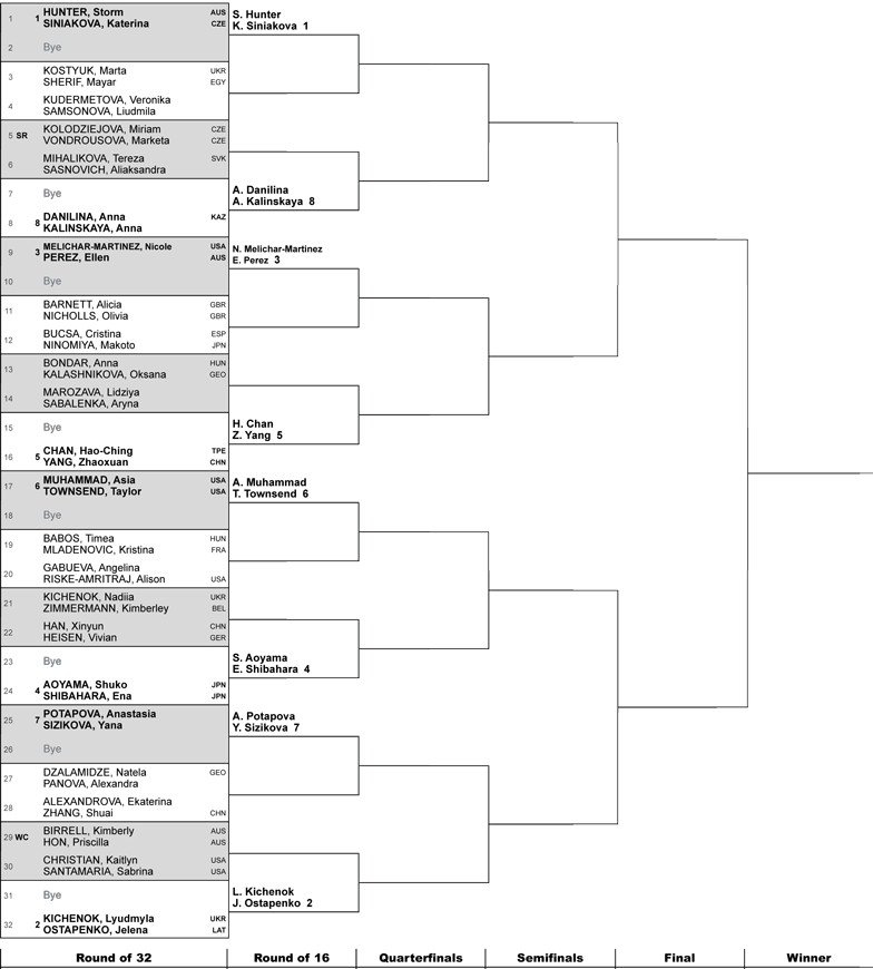 1. Сторм Хантер/Катержина Синякова (Австралия/Чехия) — BYE