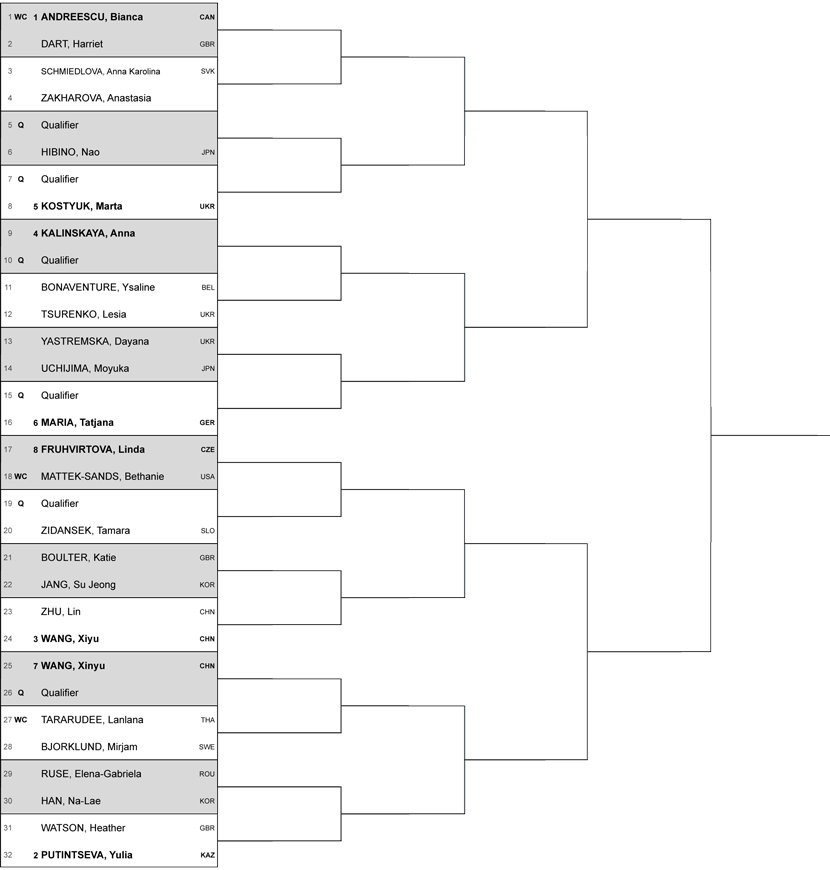 Сетки турнира: квалификация • одиночный разряд • парный разряд