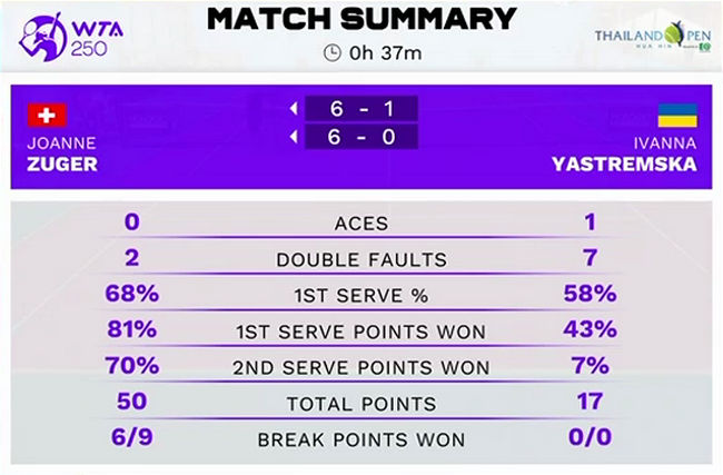 Иванна Ястремская (Украина, WC) — Йоанне Цугер (Швейцария, 3) 1:6, 0:6
