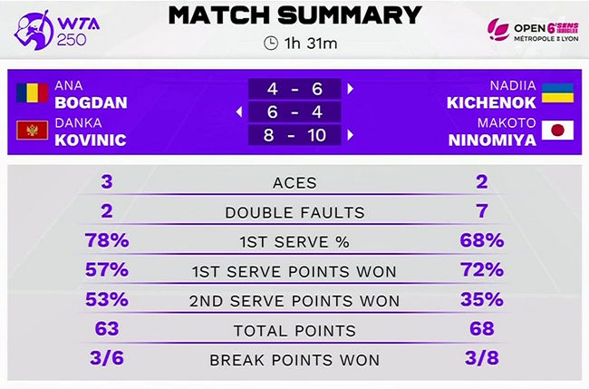 Следующими соперницами Киченок и Ниномии станет дуэт Ольга Данилович/Александра Панова (Сербия/-).
