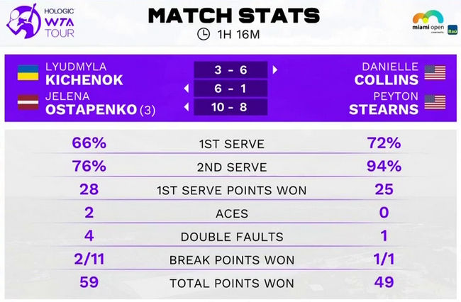 Майами. Киченок и Остапенко победили обладательниц wild card в первом круге