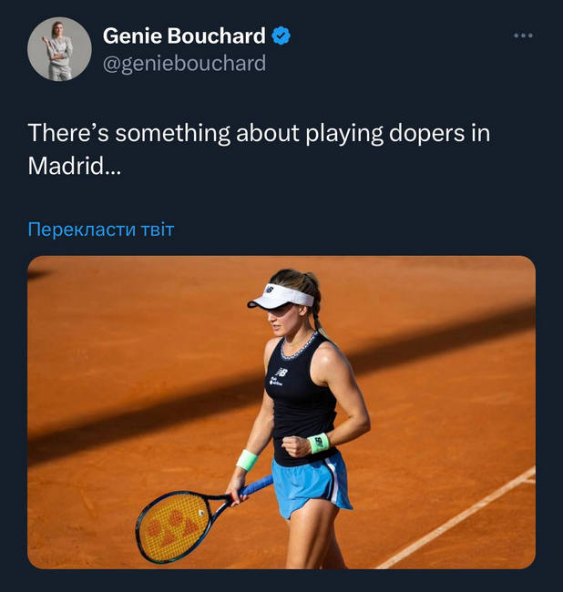 После матча с Даяной Ястремской на турнире в Мадриде, который Бушар выиграла, канадка написала в своем Twitter: «Есть что-то такое в том, чтобы играть в Мадриде против «допингистов», явно намекнув на свой поединок против Марии Шараповой на этом турнире в 2017 году и ситуацию с допинг-сканадалом украинской теннисистки в 2021 году.