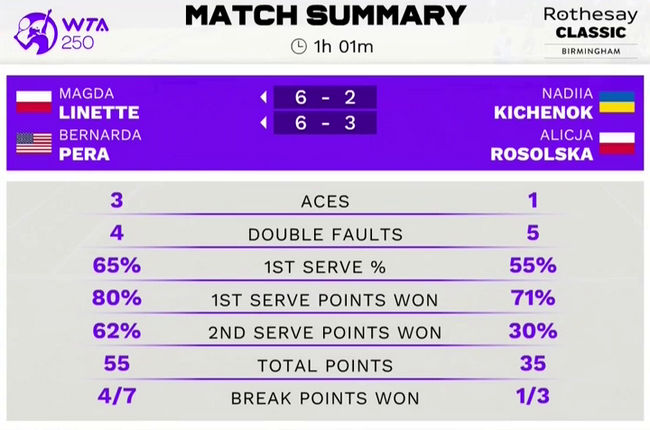 Киченок и Росольска проиграли второй совместный матч. На предыдущей неделе теннисистки уступили на старте турнира WTA 250 в Ноттингеме.