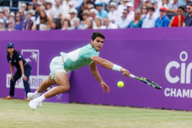 Карлос Алькарас, который проводит девятый турнир в сезоне, восьмой раз вышел в четвертьфинал. Испанский теннисист впервые играет турнир АТР на траве и в матче за выход в полуфинал встретится с Григором Димитровым, которого обыграл в прошлом году на «Мастерсе» в Париже и в этом сезоне на «Мастерсе» в Мадриде.