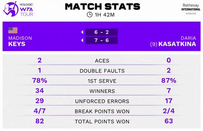 Мэдисон Кис (США) — Дарья Касаткина (-, 9) 6:2, 7:6(13)