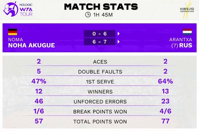 Нома Ноха Акугуе на этой неделе занимает 207-ю строчку в мировом рейтинге (личный рекорд — №197), а в ближайший понедельник немка дебютирует в топ-150.