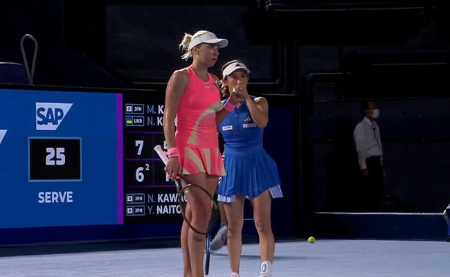 Киченок и Като впервые выступают вместе. По ходу сегодняшнего матча теннисистки смогли сделать четыре брейка и проиграли два гейма на своих подачах.