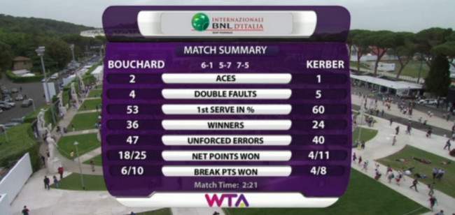 Победа над Кербер стала для Бушар второй над теннисисткой из Топ-5 в карьере (Халеп, Уимблдон-2014). В личных противостояниях Эжени ведёт уже 3-1.