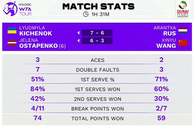 Отметим, что теннисистки четвёртый раз выступают в Дубае, и их лучшим результатом на этом турнире является финал два года назад. В предыдущем сезоне Киченок и Остапенко дошли до полуфинала.