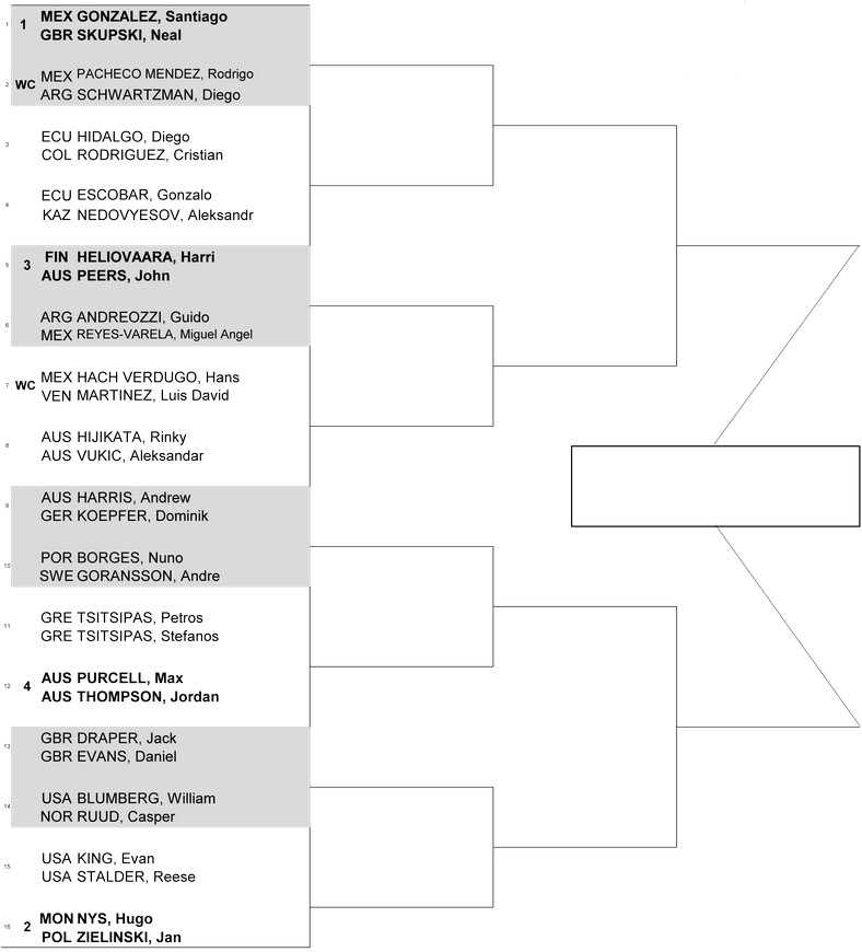 1. Сантьяго Гонсалес/Нил Скупски (Мексика/Великобритания) — Родриго Пачеко Мендес/Диего Шварцман (Мексика/Аргентина)