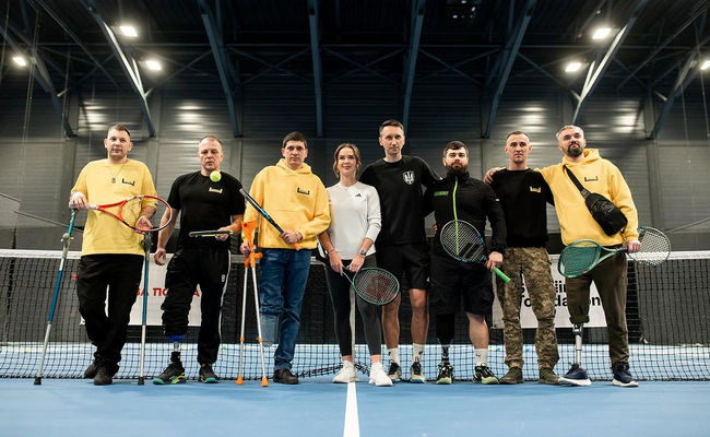 Теннисное мероприятие посетили украинские военные, которые проходят реабилитацию в центре «Unbroken», где лечат, протезируют и поддерживают пострадавших от войны детей и взрослых, в том числе многих защитников, которые потеряли конечности.