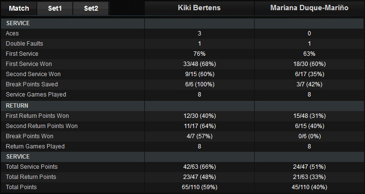 Титул WTA в Нюрнберге стал для Бертенс вторым в её карьере. В 2012 году Кики стала победительницей соревнований в марокканском Фесе.