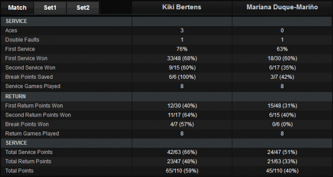 В финале 24-летняя голландка, которая начала турнир с квалификационных матчей, отдала лишь четыре гейма колумбийской теннисистке Мариане Дуке-Марино: 6:2, 6:2.