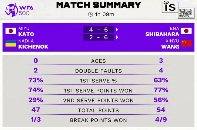 Киченок и Като провели четвёртый совместный матч в этом сезоне и потерпели третье поражение подряд. В апреле теннисистки одержали одну победу на турнире WTA 1000 в Мадриде, а на следующем турнире WTA 1000 в Риме они проиграли на старте.