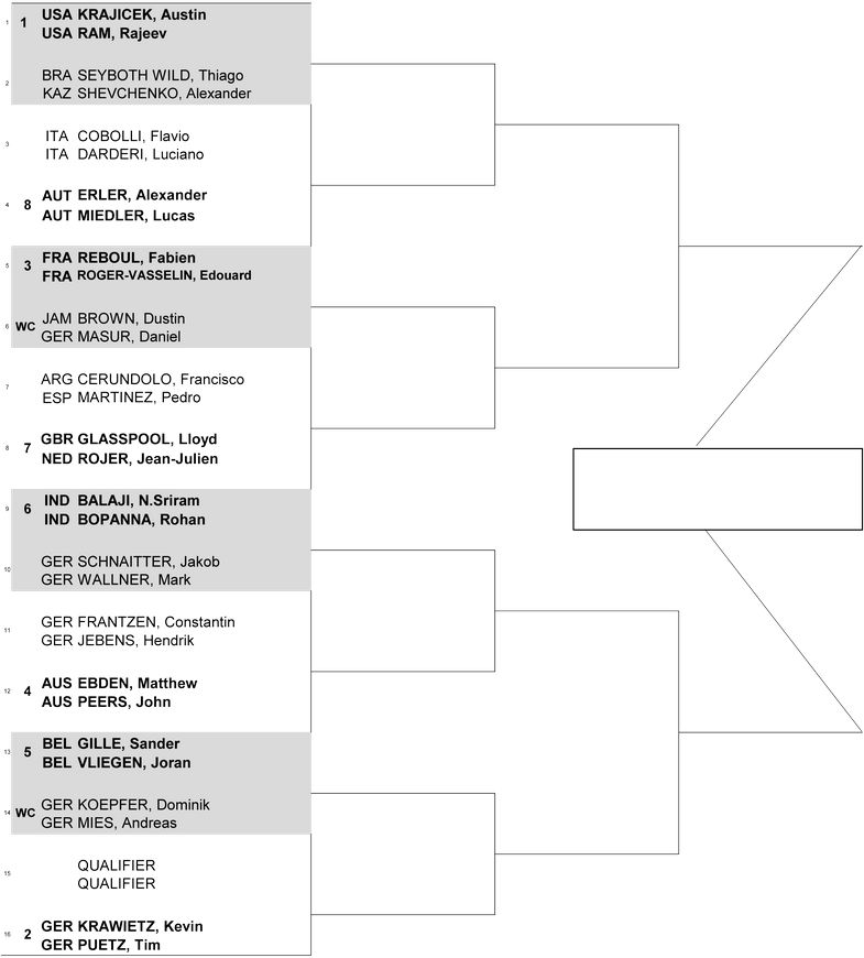 1. Раджив Рам/Остин Крайичек (США) — Тьягу Зайбот Вилд/Александр Шевченко (Бразилия/Казахстан)