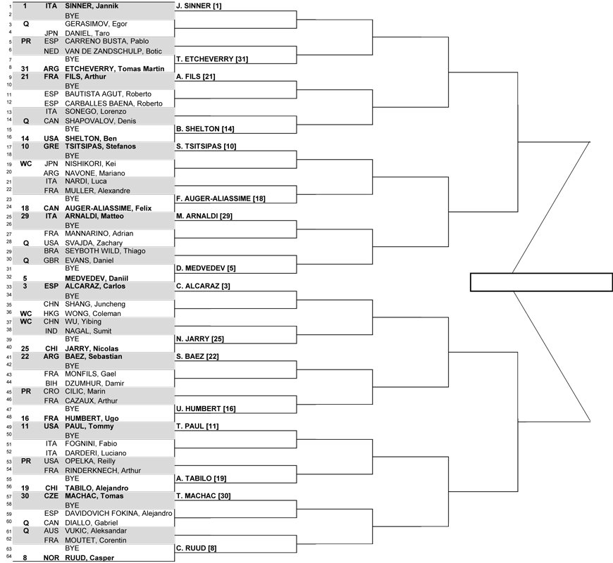 1. Янник Синнер (Италия) — «квалифаер» / Таро Даниэль (Япония)