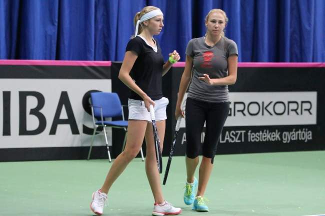 В стартовом поединке парных соревнований, украинки посеянные под вторым номером, уступили китайской паре Чен Лианг / Яфан Ванг: 4-6 6-7(7). Поединок продолжался 1 час 52 минуты. Сестры Киченок три раза подали навылет, столько же раз допускали двойную ошибку и сделали три брейка на подаче соперниц.