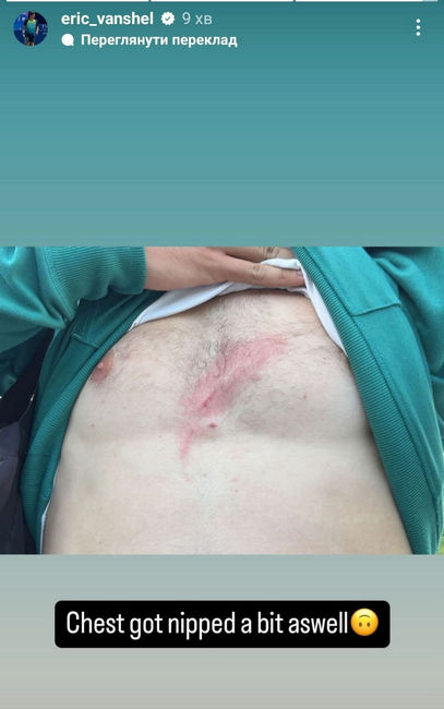 Ваншельбойм поделился видео эпизода в своем Инстаграм, подписав его: «Прощай, нос», а также опубликовал фото с ссадиной на груди.