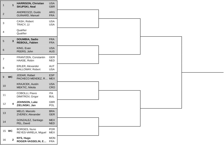 1. Кристиан Харрисон/Нил Скупски (США/Великобритания, 1) — Гвидо Андреоцци/Мануэль Гинар (Аргентина/Франция)
