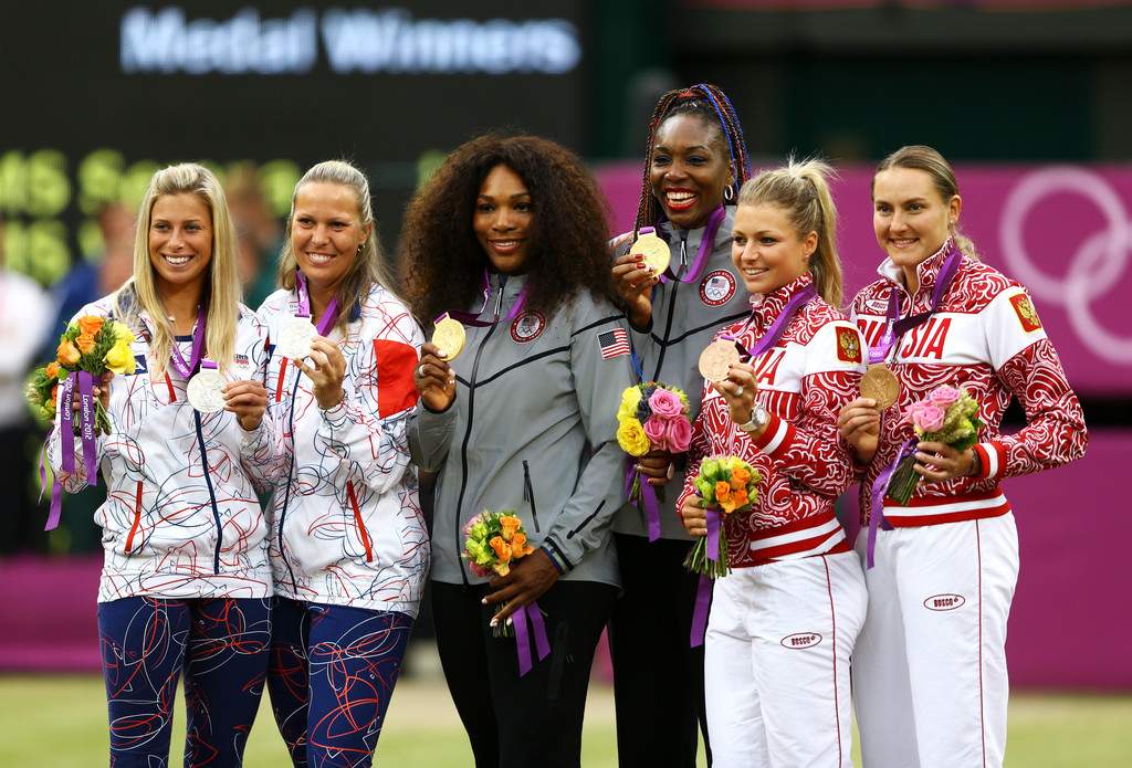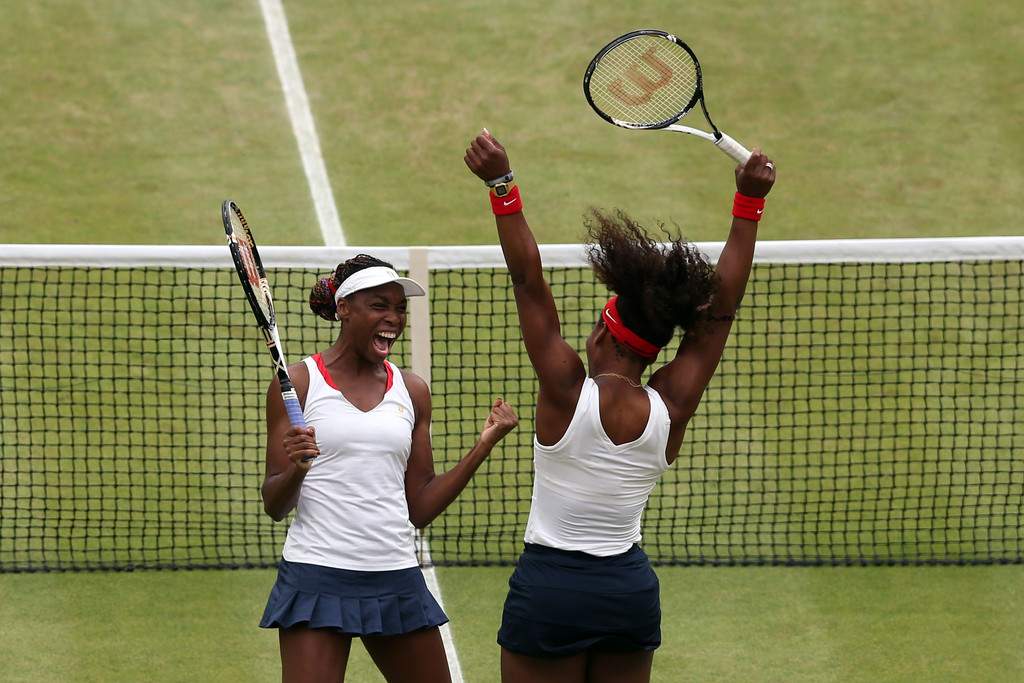 Очередной рекорд сестер Уильямс — третье парное «золото» и впервые в олимпийской истории двое игроков стали обладателями четырех золотых медалей в одиночке и паре. Олимпиада в Лондоне также стала первой, когда чемпионами и среди мужских, и среди женских дуэтов стали братья и сестры. Не попав в число сеяных, Серена и Винус не проиграли на турнире ни сета. В полуфинале американки празднуют победу над Кириленко и Петровой, а в верхней половине сетки лидеры посева Лизель Хубер и Лиза Реймонд (США) уступают Главачковой и Градецкой (Чехия, 4). Первые ракетки турнира проиграли и в борьбе за бронзовые медали россиянкам Марии Кириленко и Надежде Петровой.