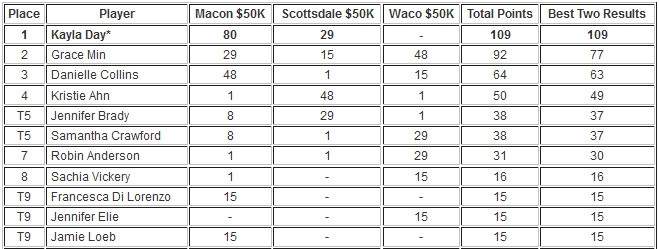 Отметим, что Хаддад-Майя в финале турнира в Уэйко лишила Грэйс Мин шансов на wild card в основную сетку Открытого чемпионата Австралии, которая разыгрывалась между представительницами США в серии трёх 50-тысячников. Теннисисткой, показавшей лучший результат на двух из данных турниров, оказалась чемпионка юниорского US Open-2016 — Кайла Дэй. Американка стала победительницей первого турнира серии в Мэйконе, а также дошла до полуфинала в Скоттсдейле, где проиграла будущей чемпионке Беатрис Хаддад-Майе. Этих результатов оказалось достаточно, чтобы занять первое место в «гонке».
