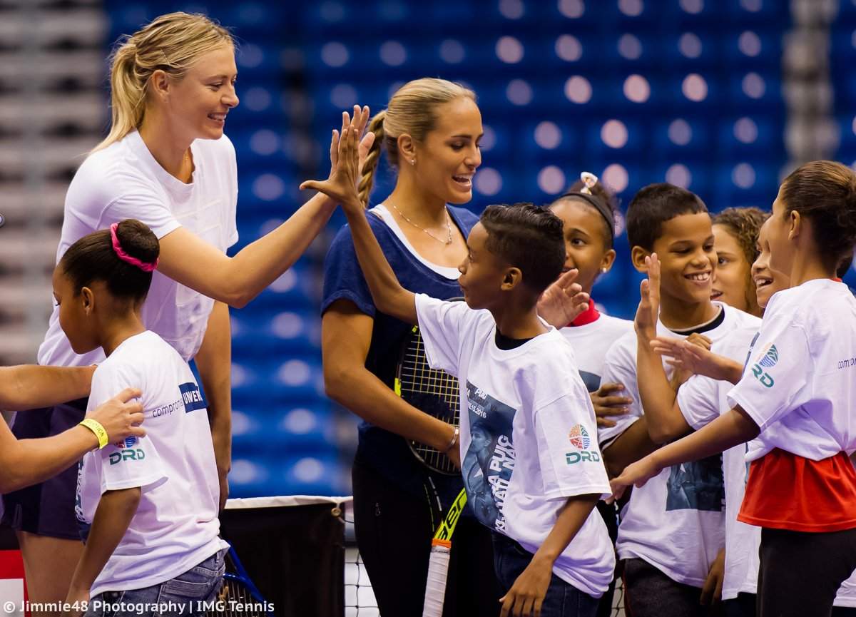 Накануне матча состоялся мастер-класс с участием Моники Пуиг и Марии Шараповой для детей из местной теннисной школы.