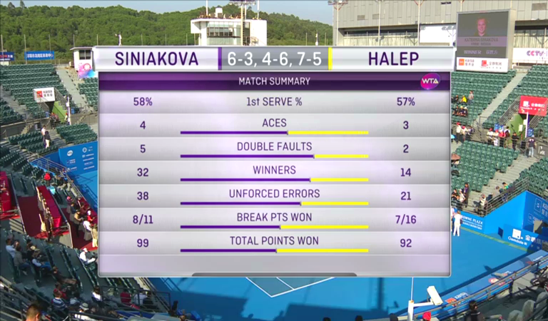 Катержина Синякова (Чехия) — Симона Халеп (Румыния, 2) 6:3, 4:6, 7:5