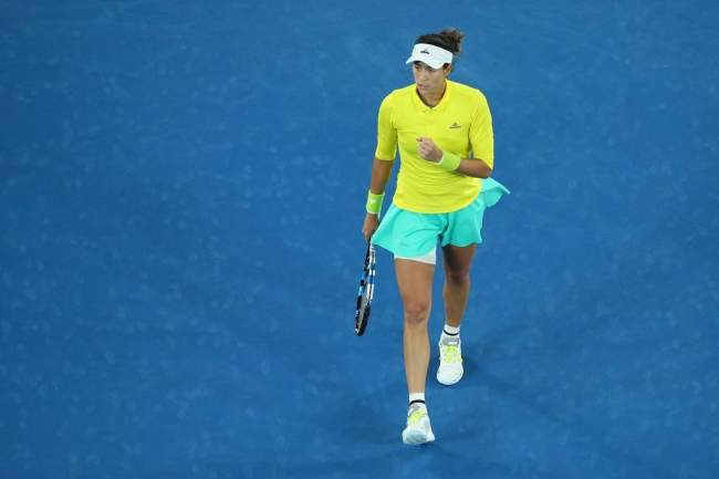 •• Жребий вновь свёл Гарбинье Мугурусу и Анастасию Севастову на начальных стадиях «мэйджора». На US Open-2016 латвийская теннисистка обыграла тогда третью сеяную со счётом 7:5, 6:4.