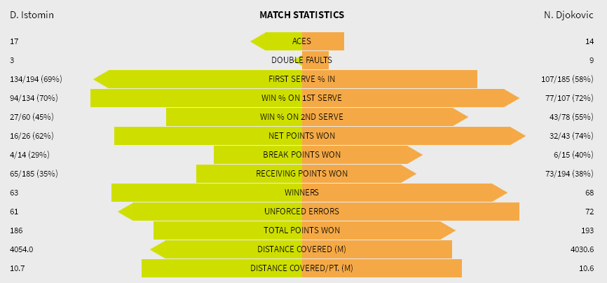 Денис Истомин (Узбекистан) — [2] Новак Джокович (Сербия) 7-6(8) 5-7 2-6 7-6(5) 6-4