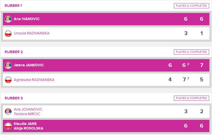 Сборные Польши и Сербии сыграют между собой во второй раз. В 2008 году также в рамках зонального турнира Ана Иванович и Елена Янкович нанесли поражение сёстрам Радваньским в одиночных матчах.
