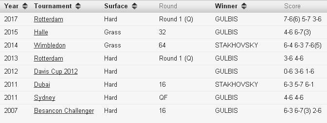 В первом раунде отборочного турнира украинец встретится с экс-десятой ракеткой мира Эрнестом Гулбисом. Это будет уже второй очный поединок теннисистов в этом году: в феврале Стаховский потерпел поражение от Гулбиса в упорном матче в квалификации в Роттердаме. На данный момент в рейтинге ATP Сергей занимает 110-е место, а Эрнест — 169-е.