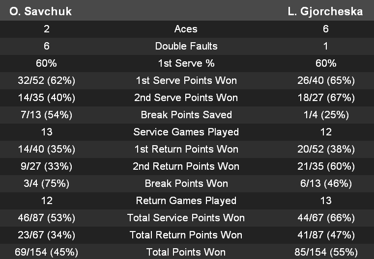 Ольга Савчук (Украина) — Лина Гьорческа (Македония) 2-6 6-3 2-6