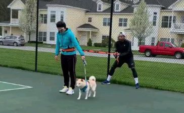 Вторая ракетка Китая тренируется на корте вместе со своей собакой (ВИДЕО)